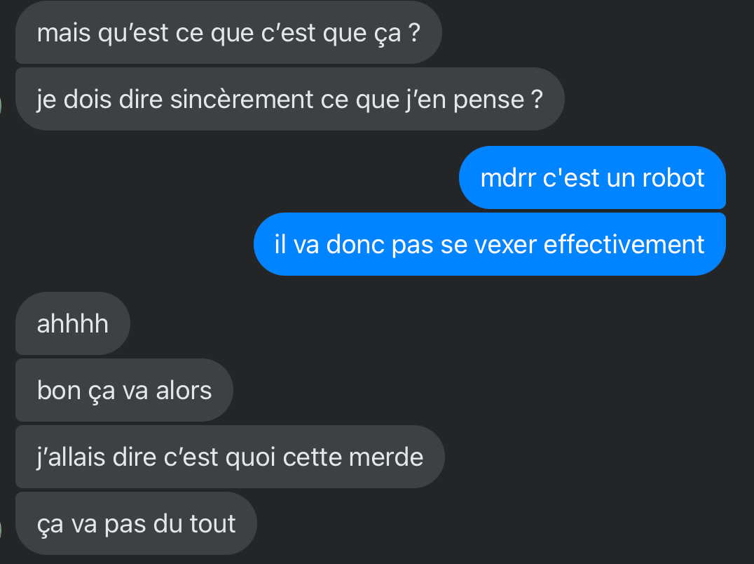 Je ne lui ai pas dit que c’était écrit par ChatGPT. Voilà sa réaction :